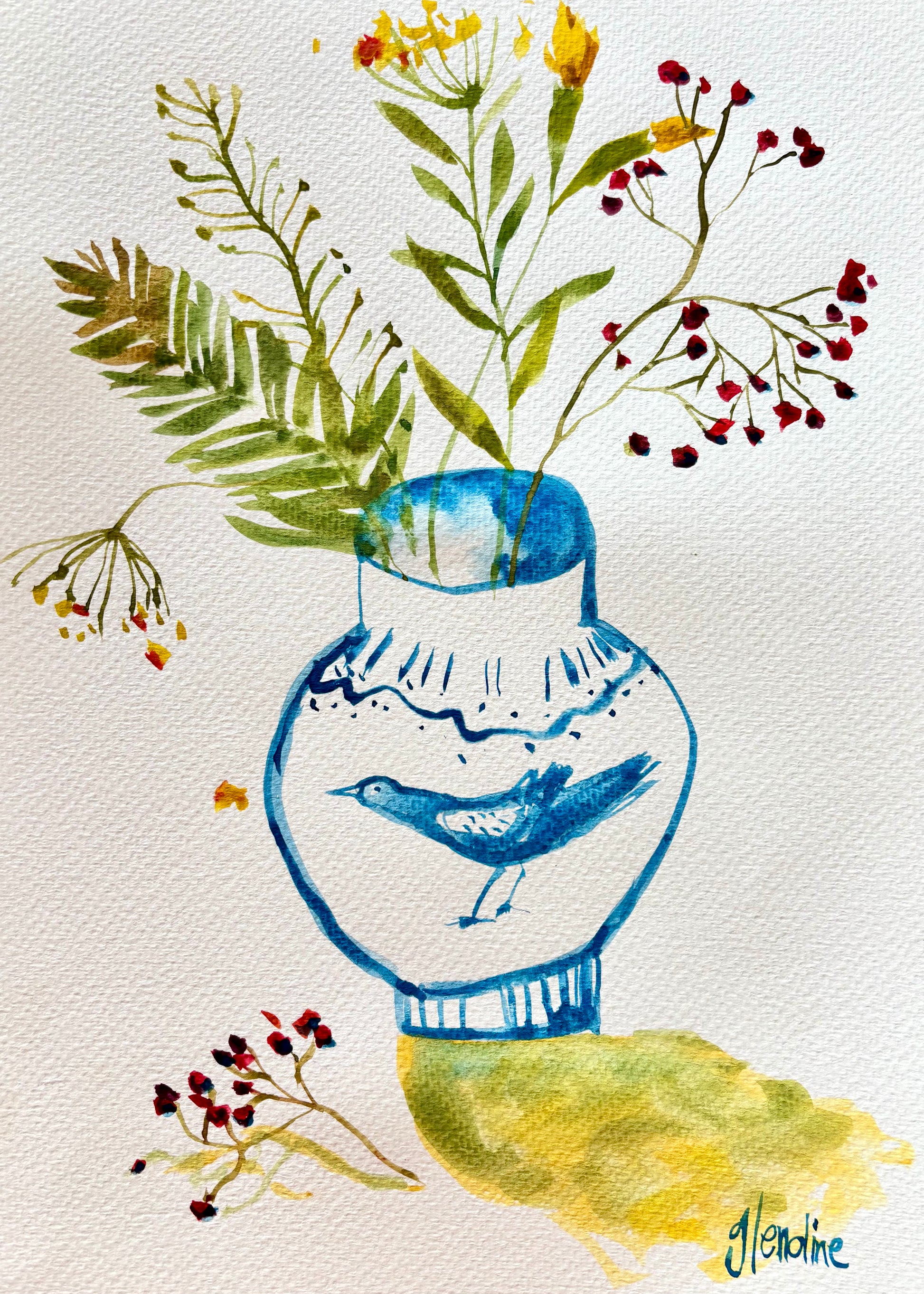 This series of original works on paper was created from the heart of my home, the kitchen table. It’s where life unfolds quietly: dogs at my feet, flowers in a jar, light shifting across familiar objects. These small, intimate pieces are rooted in observation and memory. They are a celebration of everyday beauty, daily life rituals, and the quiet stories that surround us when we slow down and take notice.