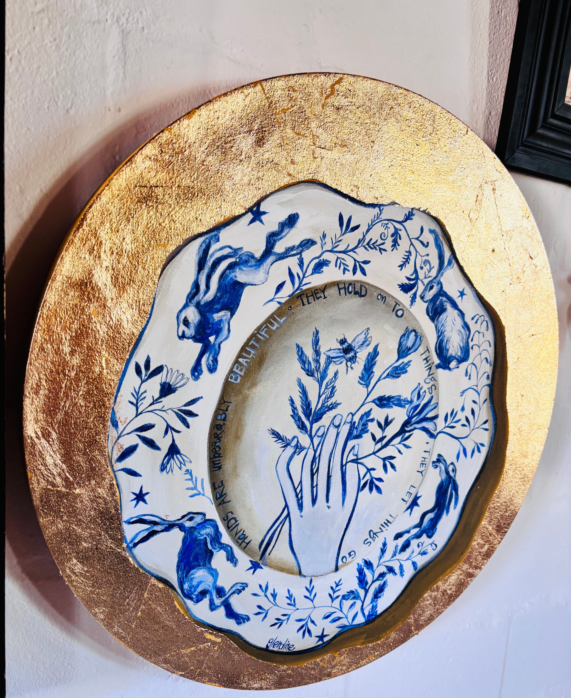 Acrylics and Gold Leaf on round stretched canvas