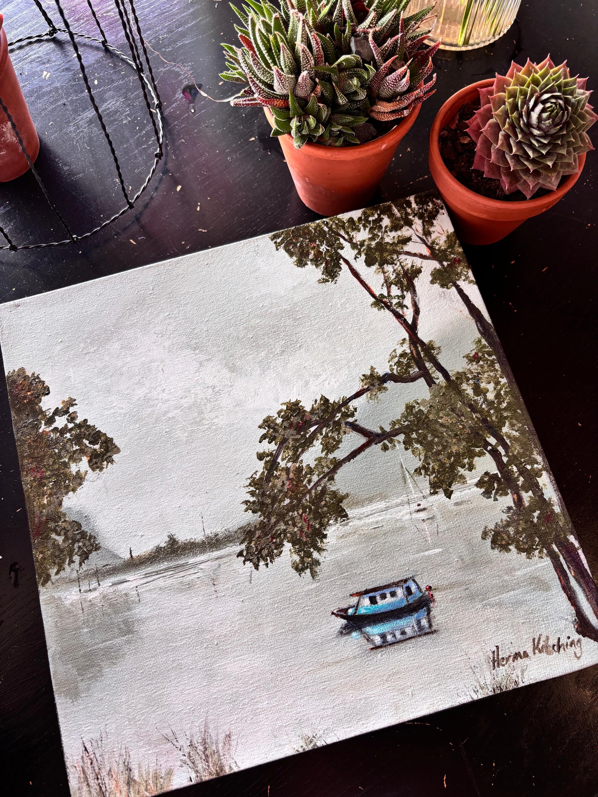 Herma Kitching is a South African contemporary artist known for her expressive, textured acrylic paintings. Working with layered techniques of smearing, spraying, and scratching, her art captures raw emotion and movement. Trained under Nanna Vorster-Bakkes, Herma’s work reflects a deep love of process and spontaneity, celebrating the joy and freedom of creation.