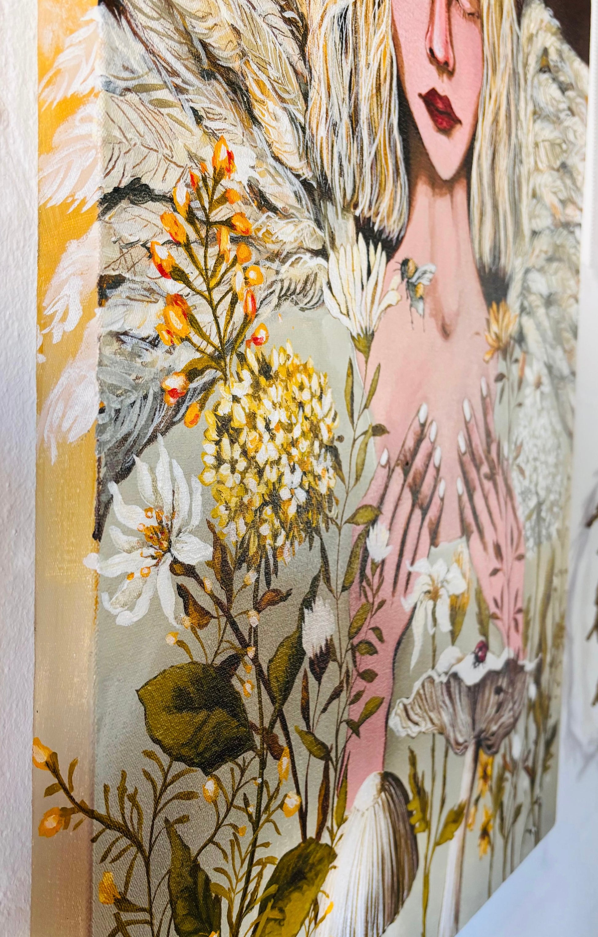 Medium: High quality print on cotton canvas and hand-finished with acrylic paint, ink and goldleaf.